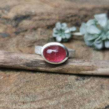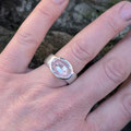 Ein schlichter Ring, der den Focus auf den wunderschönen Stein lenkt! Die zarte Ringschiene ist außen eckig, innen aber fürs Tragegefühl