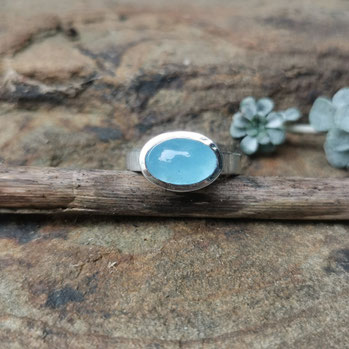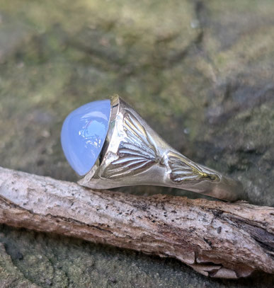 Ring aus 925er Silber mit Chalcedon und Gingkomotiv