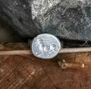 Diesen Ring ziert ein Abguss eines antiken Siegelsteins.