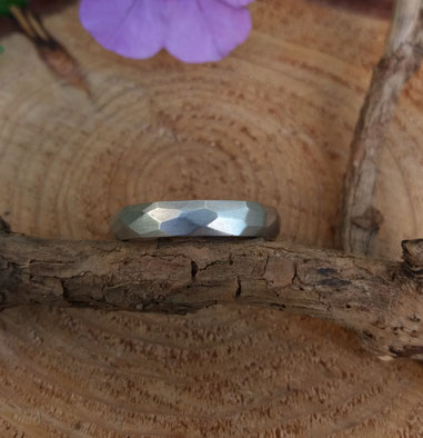 Bei diesem Ring sind die Facetten etwas wilder und unregelmäßiger über die Oberfläche verteilt.