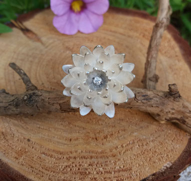 Ring "Nymphaea" aus 925er Silber mit Brilliant in 750er Weißgoldfassung