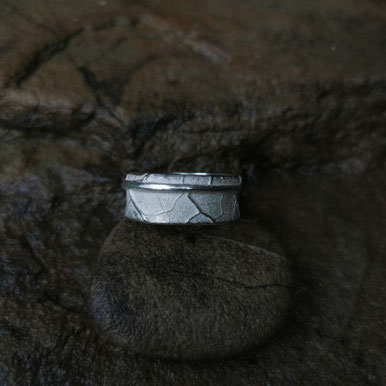 Giesßsand abgedrückt und abgegossen! Anschließend wurde der Guss in die richtige Form gebracht und verlötet. Innen ist der Ring angenehm abgerundet um ein komfortables Tragegefühl zu