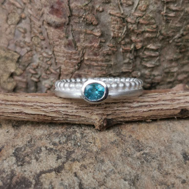 Stapelring aus 925er Silber mit türkisblauem Turmalin im